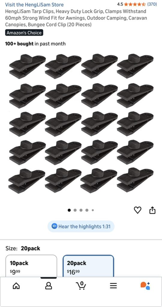 Fabric Cover Spring Clips: 5” long: