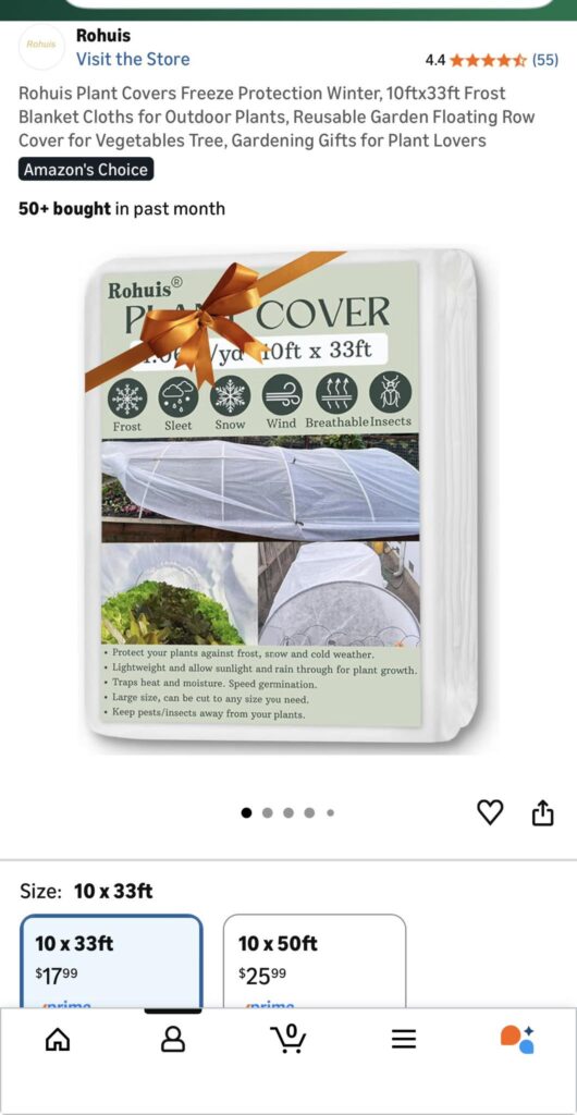 Fabric row covers (frost cloths ) 10’x50′: